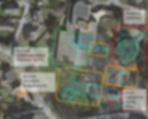Bild rechts: Lagedarstellung des Schlosses mit dem noch erhaltenen Wehrturm samt Kellergewölben und den weiteren mög-licherweise in großen Teilen als Bodendenkmal erhaltenen Schlossbereichen Abb.: Oetterer/Maas
